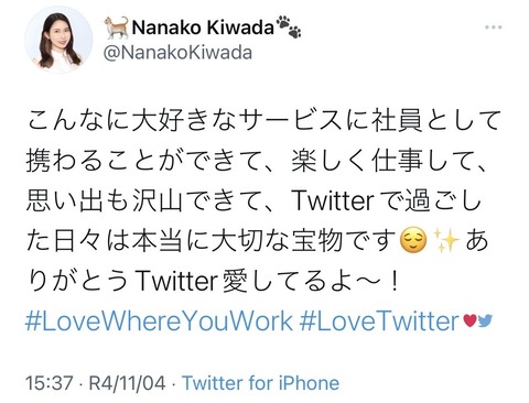 【悲報】TwitterJP社員「今までありがとう!Twitter愛してる!!」イーロン「…」ピッ