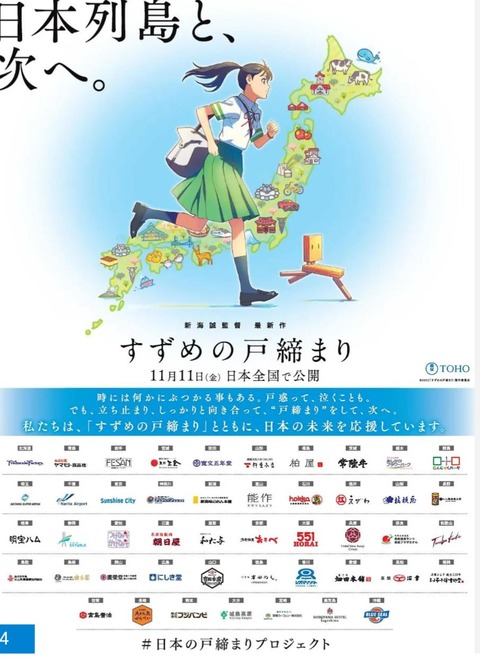 ホーム > ニュースetc > 【超絶悲報】すずめの戸締まり、広告まみれwwwww (※画像あり) 2022/11/09 1:以下、5ちゃんねるからVIPがお送りします:2022/11/09(水) 16:23:00.807 ID:CuceMsJBd 2:以下、5ちゃんねるからVIPがお送りします:2022/11/09(水) 16:23:23.600 ID:CuceMsJBd これもう2時間CMだろ… 続きを読む Source: ラビット速報 - ニュースetc