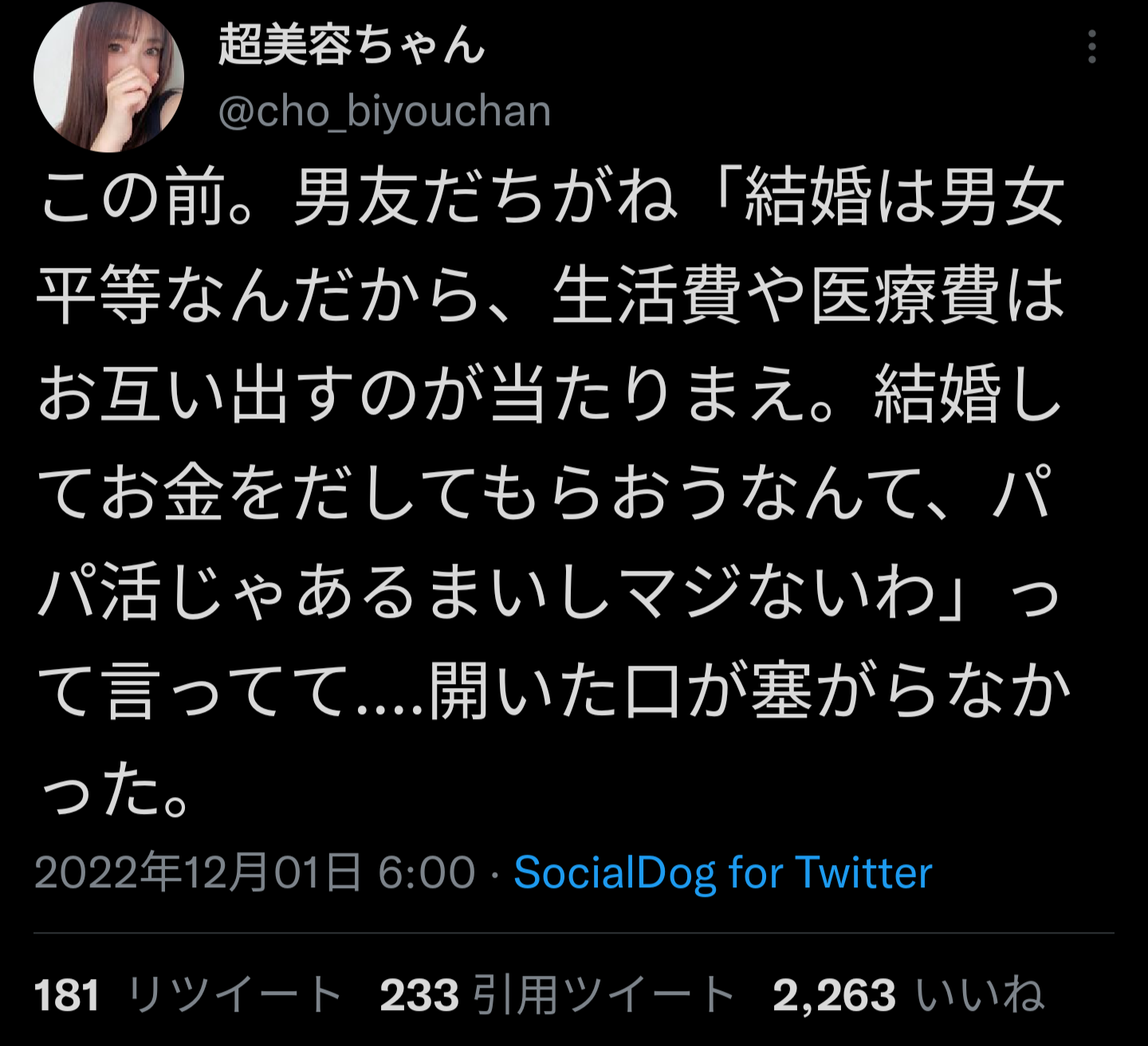 ホーム > ニュースetc > 【悲報】まんさん「結婚したらお金は平等に出すべきって言われた、ありえない」 2022/12/03 1: 風吹けば名無し 2022/12/02(金) 00:46:34.36 ID:/1NjWiKo0.net 続きを読む Source: 妹はVIPPER - ニュースetc