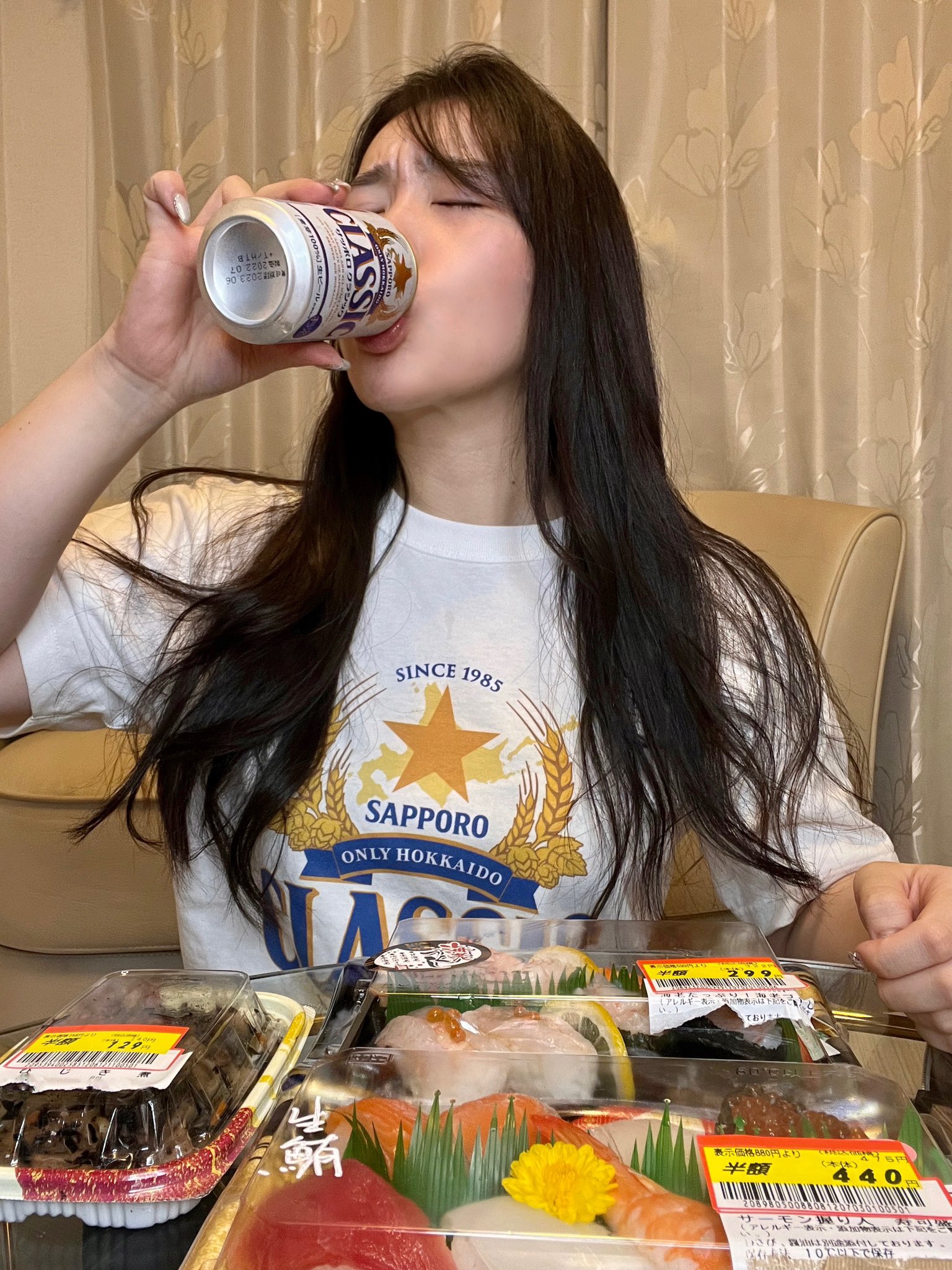 【画像】スーパーの半額寿司で呑る女wwwwwwwwwwwwwwwwwwwwwwwwwwwwww