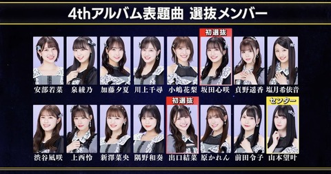 アイドルグループ・NMB48が16日、大阪・難波のNMB48劇場で行われた公演で、4thアルバム(タイトル未定、3月8日発売)の表題曲の選抜メンバー16人を発表した。