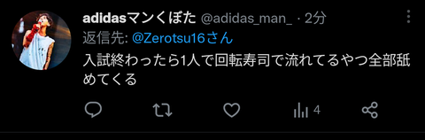 ホーム > ニュースetc > 寿司舐め予告マン、現るwwwwwwwww 2023/01/31 1:風吹けば名無し:2023/01/30(月) 17:23:36.55 ID:YhDk+jW2M.net もう回転寿司いけない 2:風吹けば名無し:2023/01/30(月) 17:24:00.29 ID:Fl+GuQzQ0.net 3:風吹けば名無し:2023/01/30(月) 17:24:35.45 ID:wrlabE6Dd.net どこの店か言ってないからセーフ 続きを読む Source: ラビット速報 - ニュースetc
