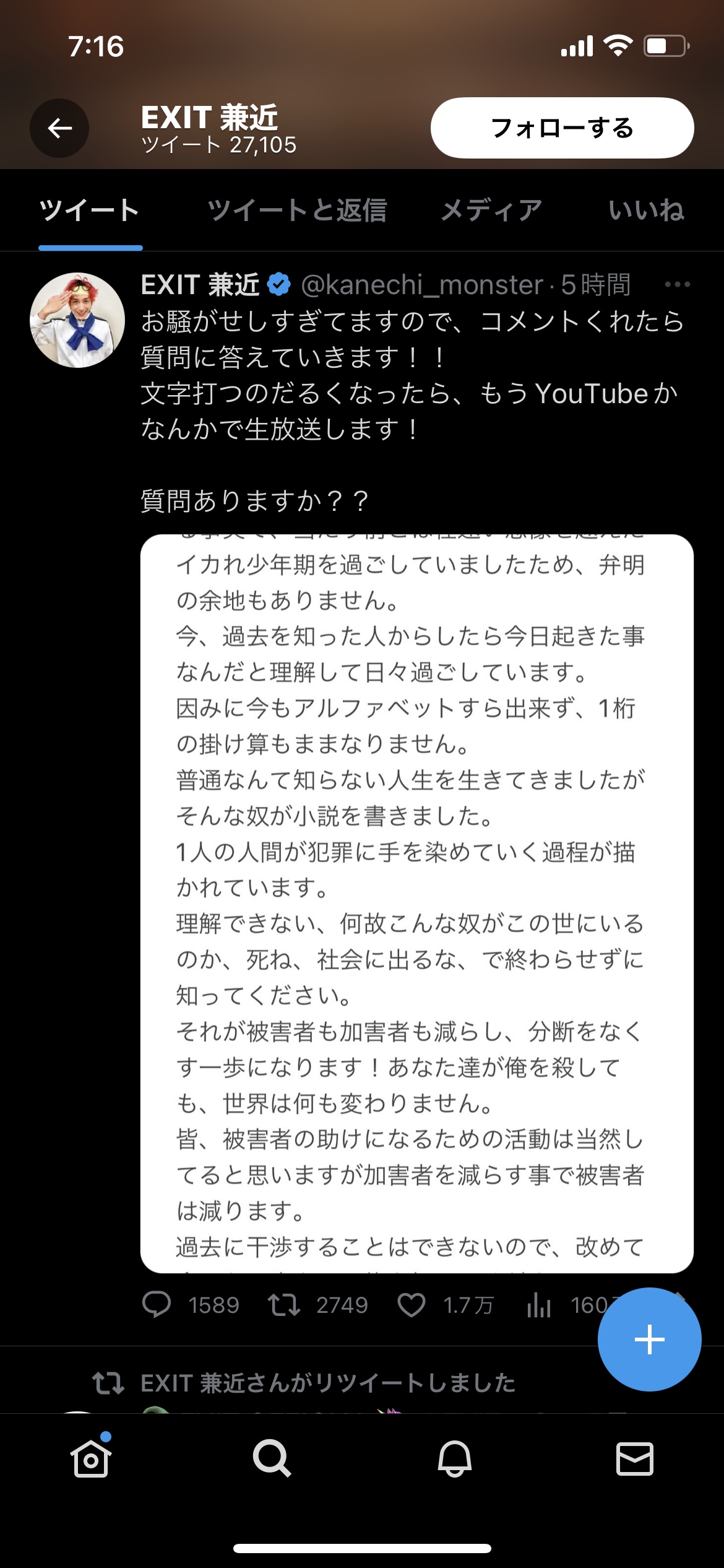 【画像】EXIT兼近さん、Twitterでお気持ち表明wwwwwwwwwwwwwwwwwwwwwwwwwwwwwwwwww