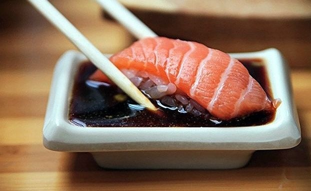 寿司を逆さまにしてネタに醤油をつけようとするとネタが剥がれる