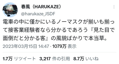【悲報】日本人さん、この期に及んで「ノーマスクは異常者」ツイがバズってしまう…