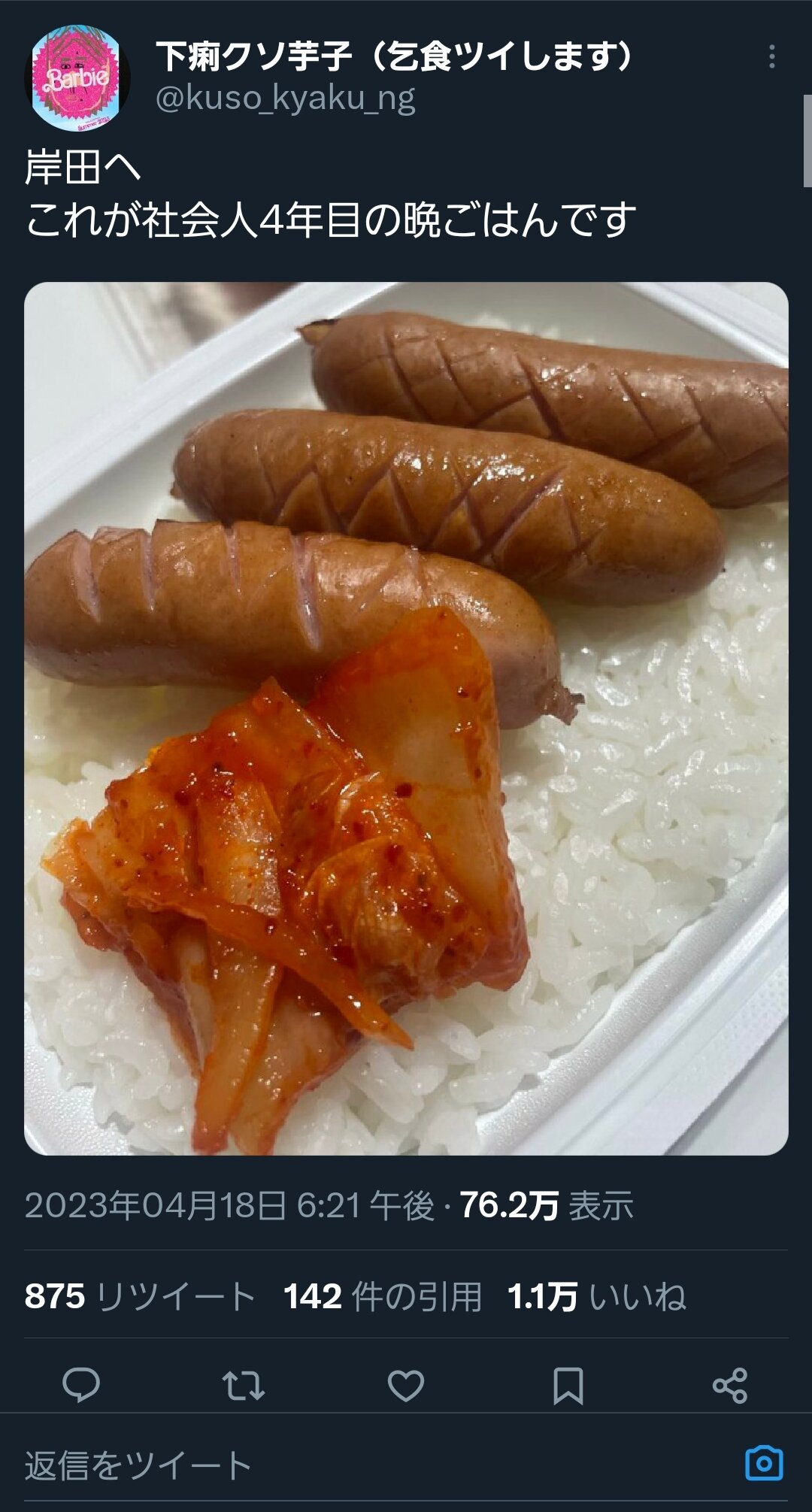 ホーム > ニュースetc > 【悲報】Twitter「岸田へ。これが社会人4年目の晩ごはんです」 2023/04/19 1: 2023/04/19(水) 13:45:48.81 ID:WUmPOEko0.net かわいそう 2: 2023/04/19(水) 13:46:37.39 ID:pS2fuMdGd.net パックご飯とか贅沢してんな 続きを読む Source: 妹はVIPPER - ニュースetc