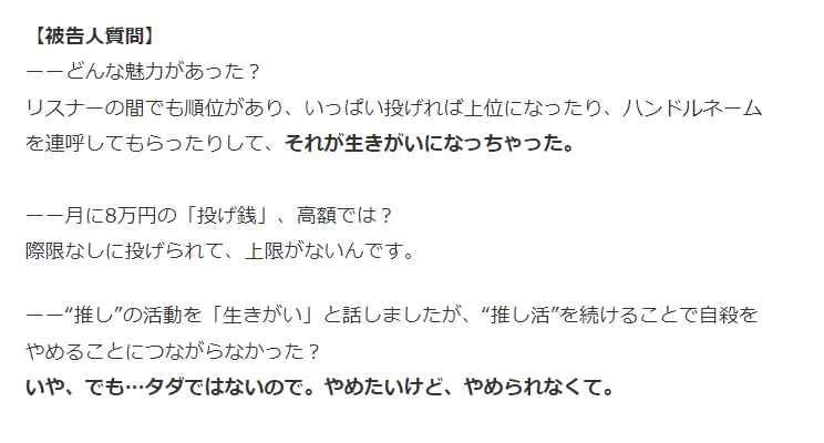 男が問われているのは、自宅アパートに火を付けた罪だ。男はライブ配信アプリを使った女性歌手への“推し活”にはまり、手取り月25万円から「投げ銭」として8万円をつぎ込むようになっていた。