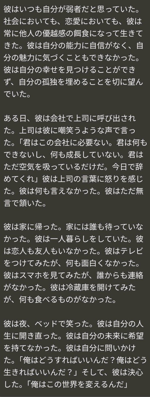 【画像】AI「弱者男性の小説書いた!w」WWWWWWWWWW