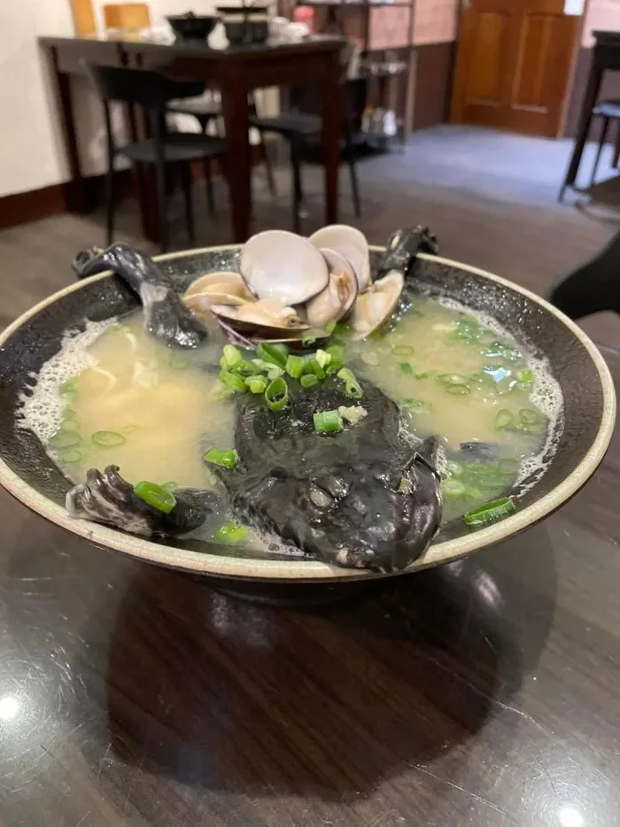 台湾の雲林県にあるラーメン店が魚ベースのスープにカエルを乗せたラーメンを客に出している