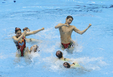 シンクロナイズドスイミングで1人だけ上半身裸 (※画像あり)