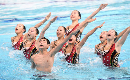 シンクロナイズドスイミングで1人だけ上半身裸 (※画像あり)