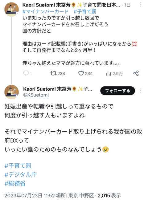 【悲報】マイナンバーカード、引っ越し3回で無効化、再発行まで2ヶ月半 「設計上の都合」
