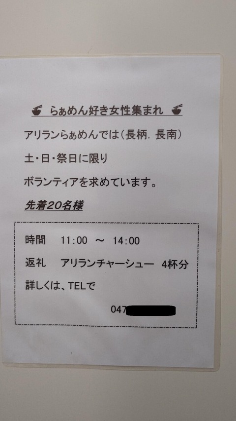 ホーム > ニュースetc > 【画像】千葉の有名ラーメン店、タダ働き20名募集!!急げ!!! 2023/07/30 1:それでも動く名無し:2023/07/30(日) 17:24:22.38 ID:Lv5Y/jJB0 2:それでも動く名無し:2023/07/30(日) 17:24:36.26 ID:Lv5Y/jJB0 人気店でボランティアできる幸せ 続きを読む Source: ラビット速報 - ニュースetc
