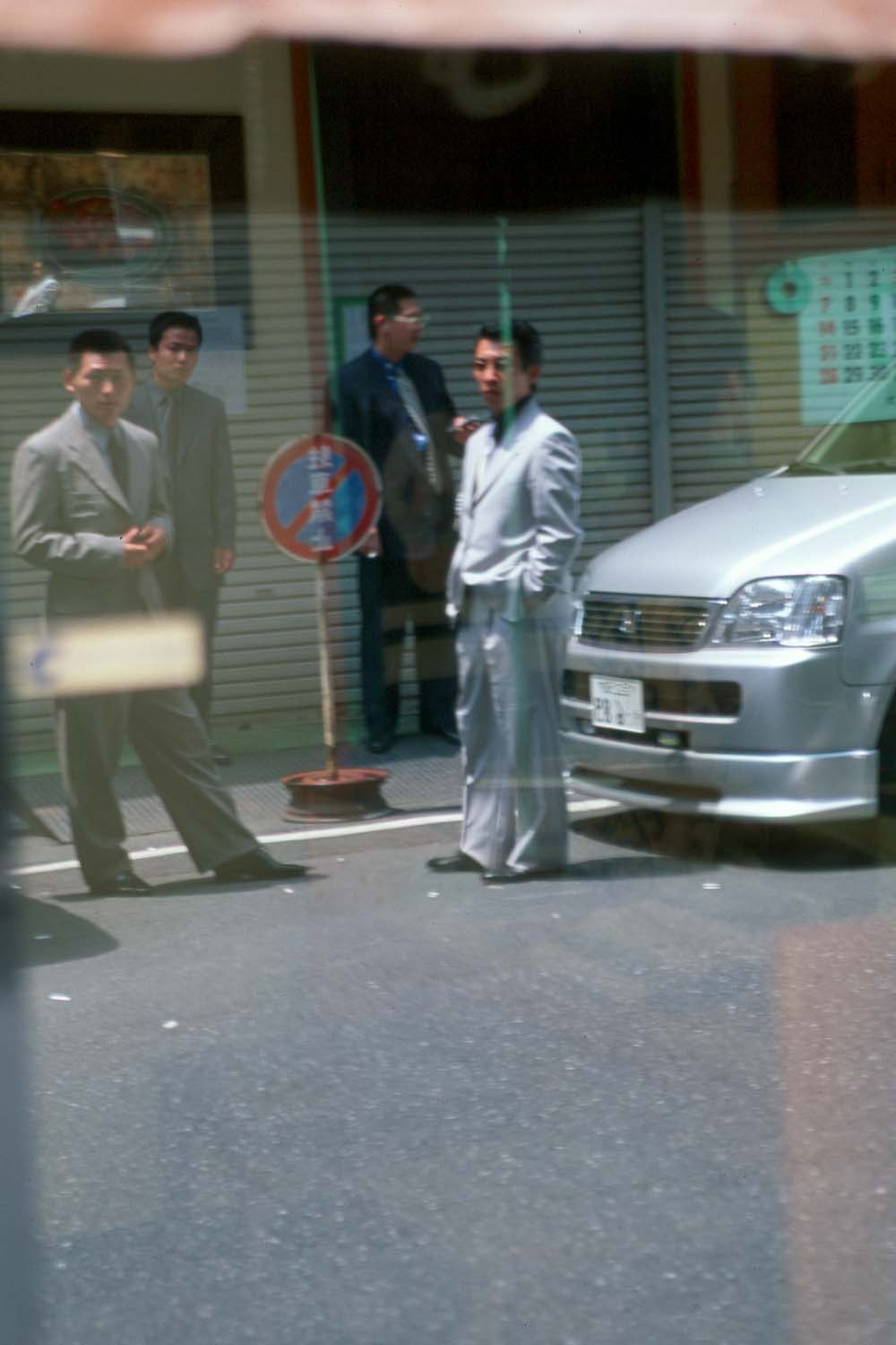 銀座の店の反射を利用して撮影した日本のヤクザ(2000年)