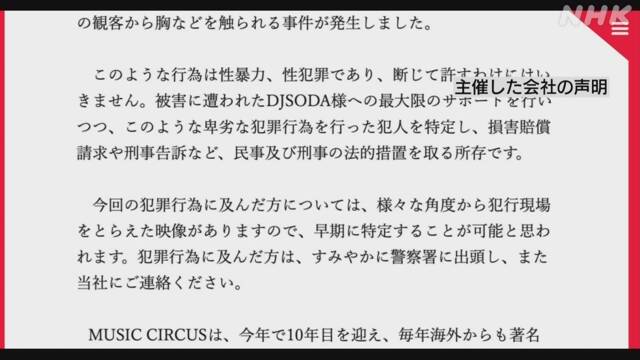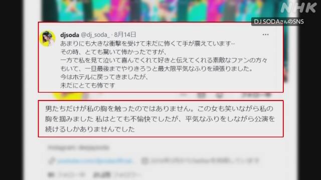 DJ SODAさん “イベントで性被害受けた” 主催者が刑事告発へ韓国の有名なDJ「DJ SODA」さんが今月、大阪で音楽イベントに出演した際、
