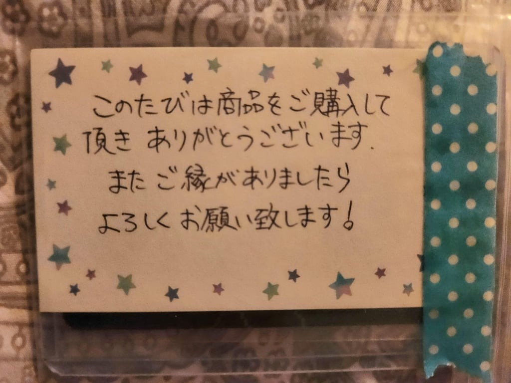 梱包が大体どれもトップレベルだし、たまに素敵なメモやシールが入ってるんだ