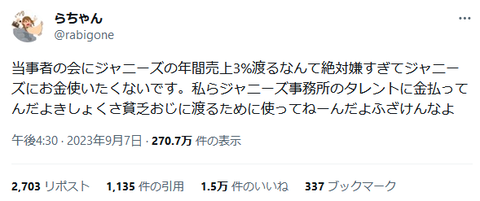 【悲報】ジャニオタまんさん、被害者への誹謗中傷ムーブで害悪オタクランキングのスターダムへ躍り出る