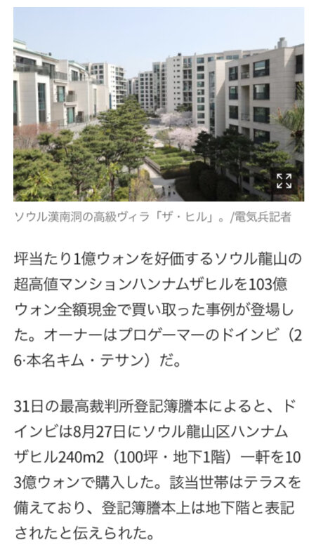 ホーム > ニュースetc > 【朗報】韓国人プロゲーマーさん、10億円の家を現金一括で購入してしまう 2023/11/04 1: それでも動く名無し 2023/11/01(水) 15:11:52.19 ID:GzZfYywv0.net https://www.chosun.com/economy/real_estate/2023/10/31/EB5XD3VKLFDABAHVKJA6YUFDMI/ 続きを読む Source: 妹はVIPPER - ニュースetc