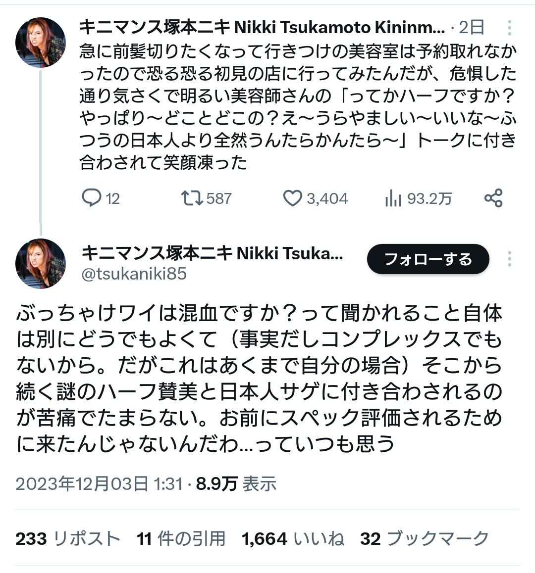 【画像】白人ハーフ女性さん 白人コンプを持つ日本人がウザすぎてゲンナリする