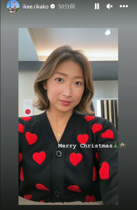 池江璃花子がクリスマスに貴重なオフショット 赤のハートマーク入りの私服を公開