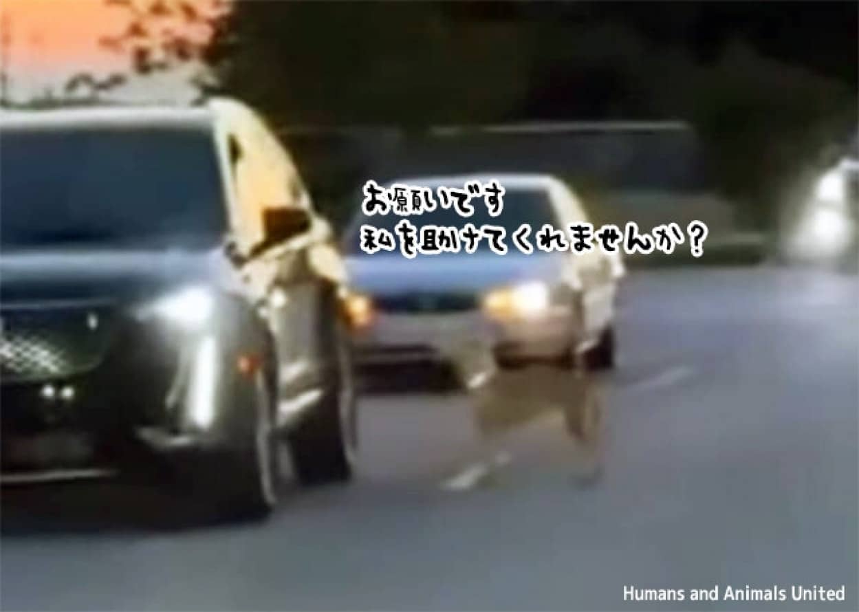 多くの車が走り去るなか、犬の必死な姿を見て1人の心やさしいドライバーが救いの手を差し伸べた。