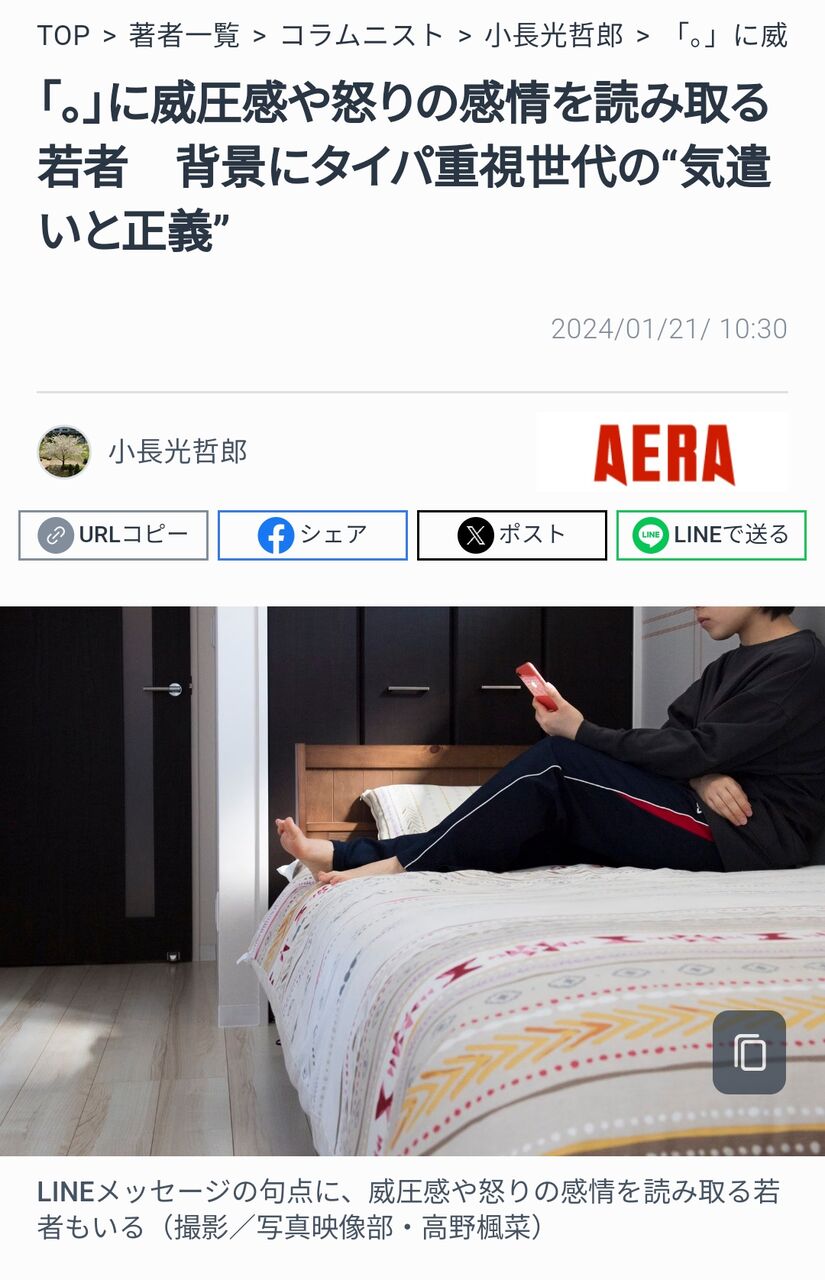 ホーム > ニュースetc > 上司LINE「お疲れ様でした。」ポチポチ)→Z世代「うわぁ『。』がついてる、怖いよぉ😣」 2024/01/28 1: それでも動く名無し 2024/01/21(日) 23:22:52.07 ID:WHKxRB780 バカだろこいつら https://dot.asahi.com/articles/-/211718?page=1 続きを読む Source: お料理速報 - ニュースetc