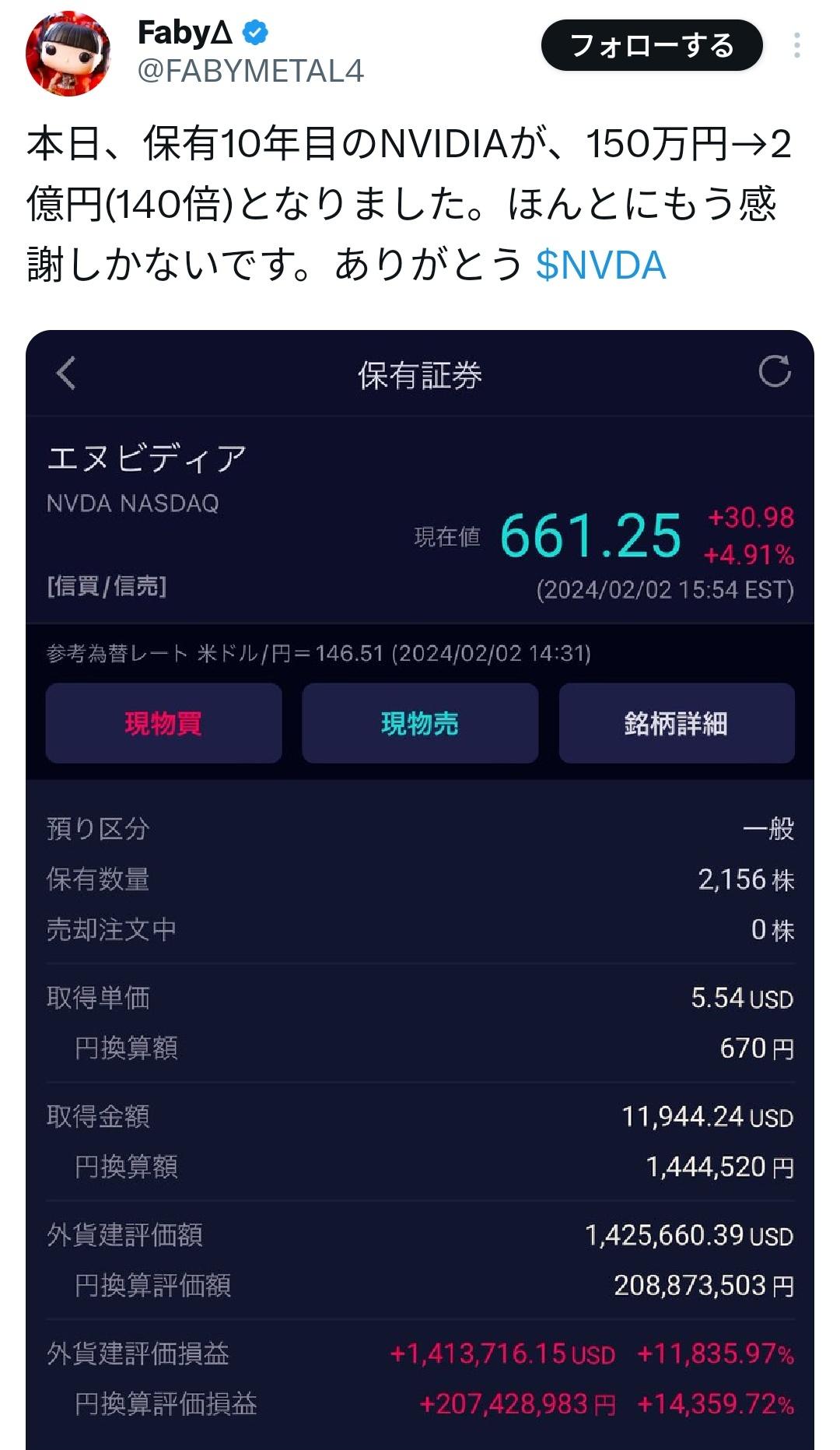 ホーム > ニュースetc > 【投資】10年前に150万で謎の会社の株を買った結果 2024/02/07 1: 2024/02/07(水) 00:14:07.29 ID:UfH3rITw0.net 2億円になった模様 2: 2024/02/07(水) 00:14:15.93 ID:UfH3rITw0.net すごすぎる 3: 2024/02/07(水) 00:14:24.96 ID:UfH3rITw0.net 嫉妬や 続きを読む Source: 妹はVIPPER - ニュースetc
