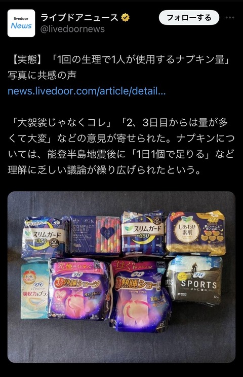 【画像】1回の生理で使うナプキンの量、お前らの想像してる8倍は多いwwwwwwwwwwwwwwwwwwwwwwwww