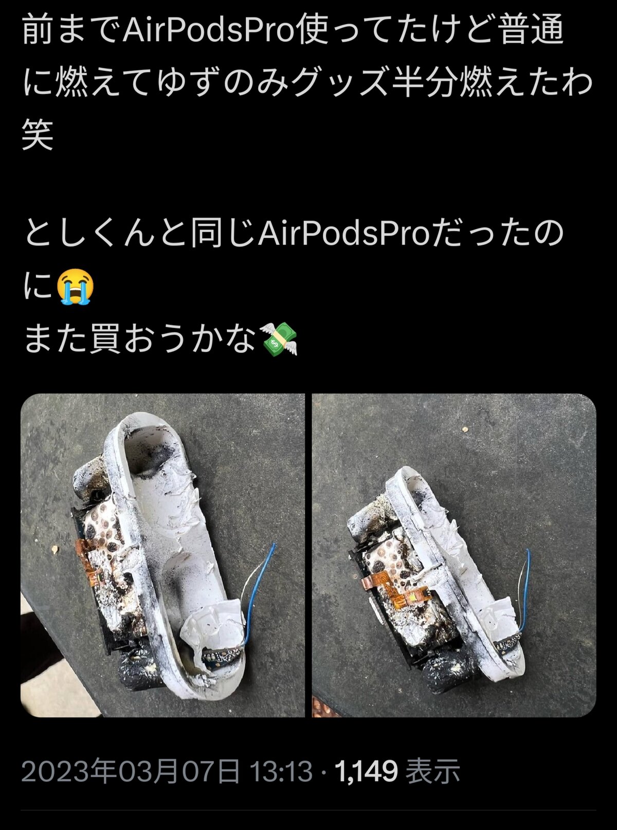 ホーム > ニュースetc > 【悲報】ワイヤレスイヤホンさん、思ったより燃えてしまう 2024/03/15 1: それでも動く名無し 2024/03/12(火) 22:34:28.52 ID:hvLEtbyLd.net ええんか… 続きを読む Source: 妹はVIPPER - ニュースetc