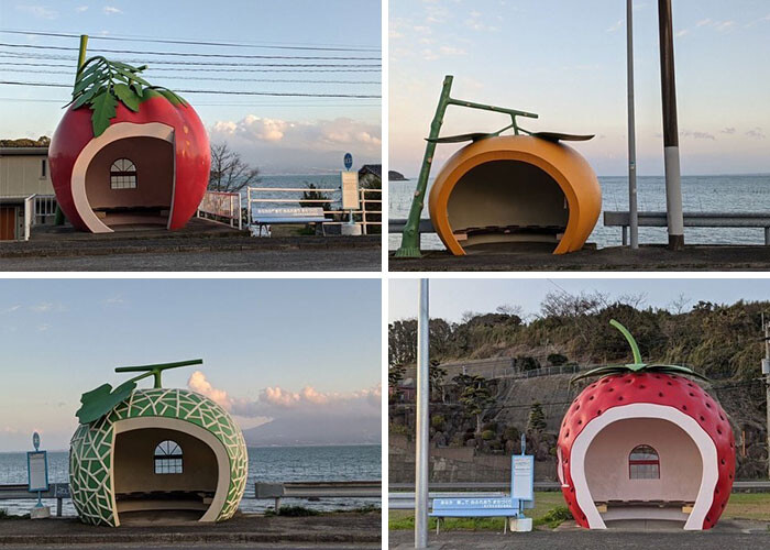 これは1990年の日本のフルーツの形をしたバス停