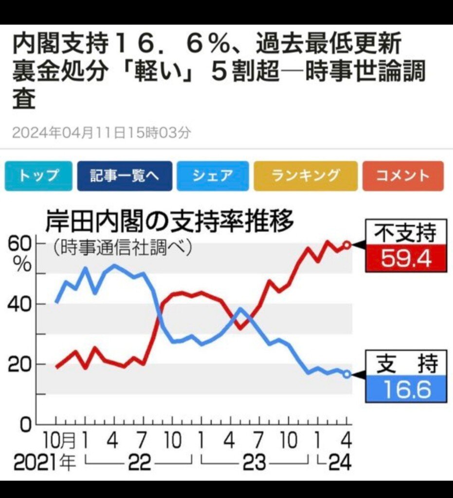 ホーム > ニュースetc > 【画像】岸田内閣、支持率59.4%wwwwwwwwwwwww 2024/04/12 1: 以下、?ちゃんねるからVIPがお送りします 2024/04/11(木) 18:01:43.878 ID:002t3rUUd.net すげえええええええ 2: 以下、?ちゃんねるからVIPがお送りします 2024/04/11(木) 18:02:18.624 ID:0HGk6VdY0.net (不)支持率で草 続きを読む Source: 妹はVIPPER - ニュースetc