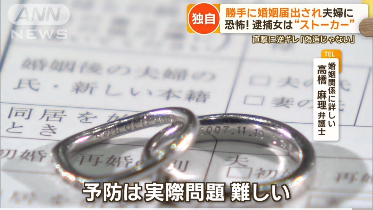勝手に婚姻届出され…半年経っても婚姻関係 逮捕の女を直撃「7年前からファン」