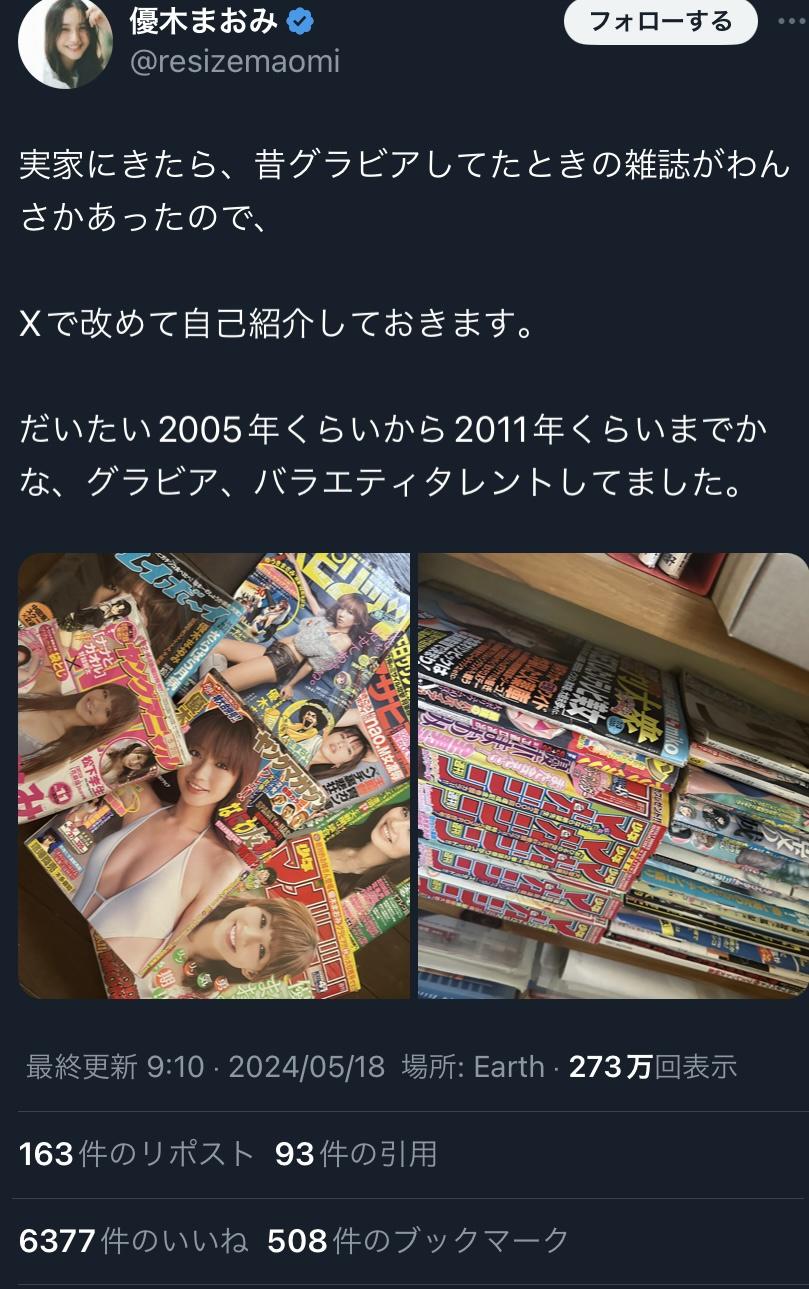 ホーム > ニュースetc > 【悲報】優木まおみ、ブチ切れ「過去のグラビア載せたら昔オカズ的なこと書いた奴いて全員ブロックしたわ」 2024/05/20 1: それでも動く名無し 警備員[Lv.2][新芽初] (2級) 2024/05/19(日) 07:55:07.91 ID:4MKTC0SM0.net 続きを読む Source: 妹はVIPPER - ニュースetc