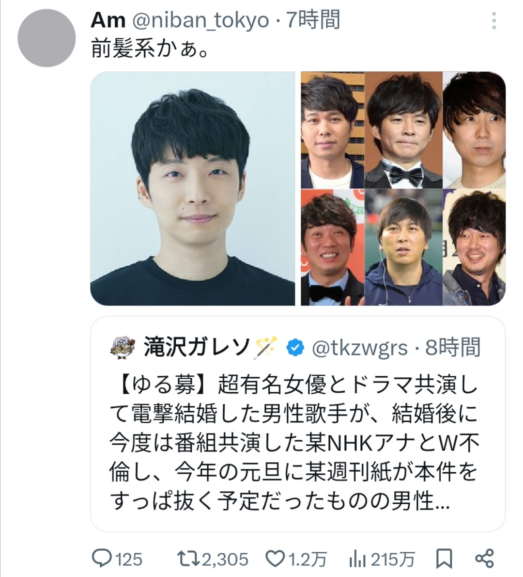 【画像】いい歳して「前髪」作ってる男、Xである共通点を指摘されるwww