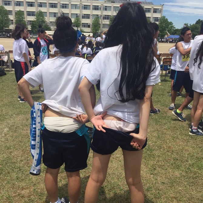 【画像】JKさん、体育祭を盛り上げたいのか自らパ●ツを晒してしまう👈🥺