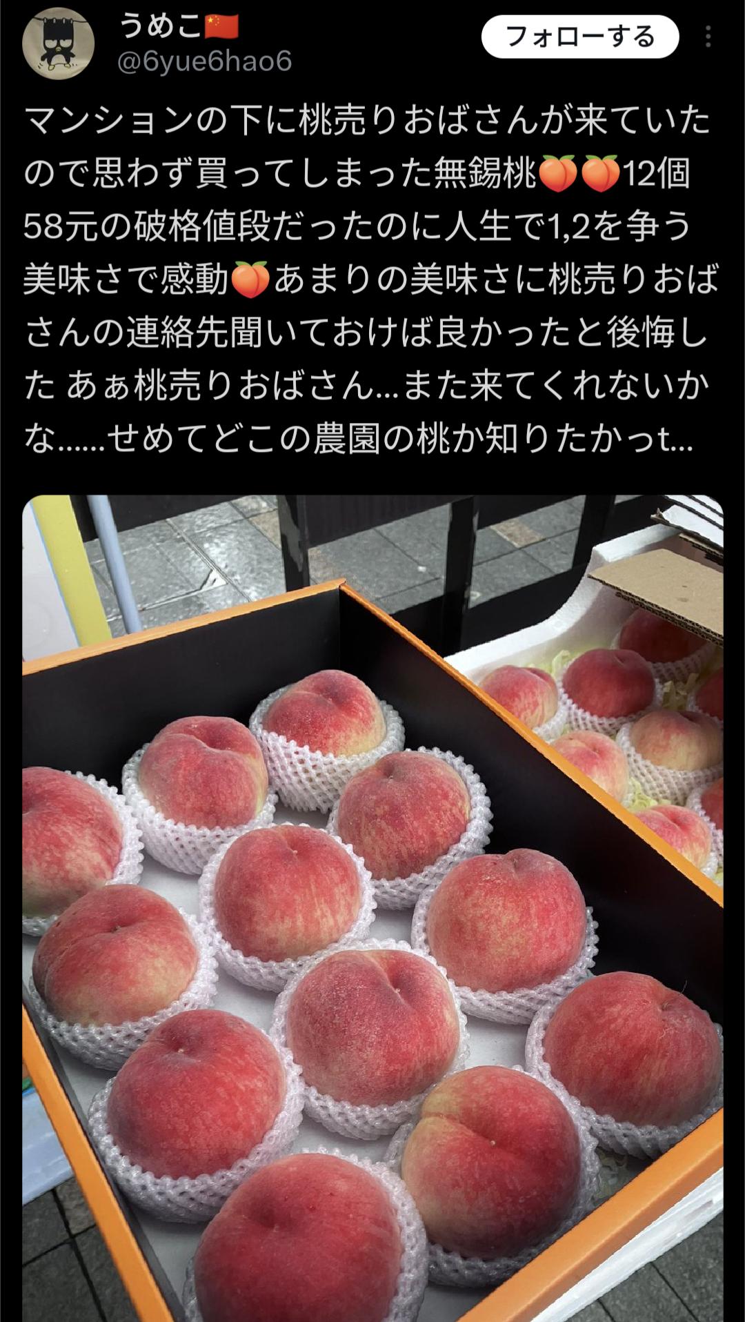 ホーム > ニュースetc > 【画像】🍑中国の桃、安すぎる🍑 2024/06/26 1: それでも動く名無し 警備員[Lv.3][新芽] 2024/06/24(月) 22:04:23.22 ID:MSAqwdiZ0.net ちな1元=21円 3: それでも動く名無し 警備員[Lv.4][新芽] 2024/06/24(月) 22:05:38.24 ID:LVcpdxKI0.net 盗品 続きを読む Source: 妹はVIPPER - ニュースetc