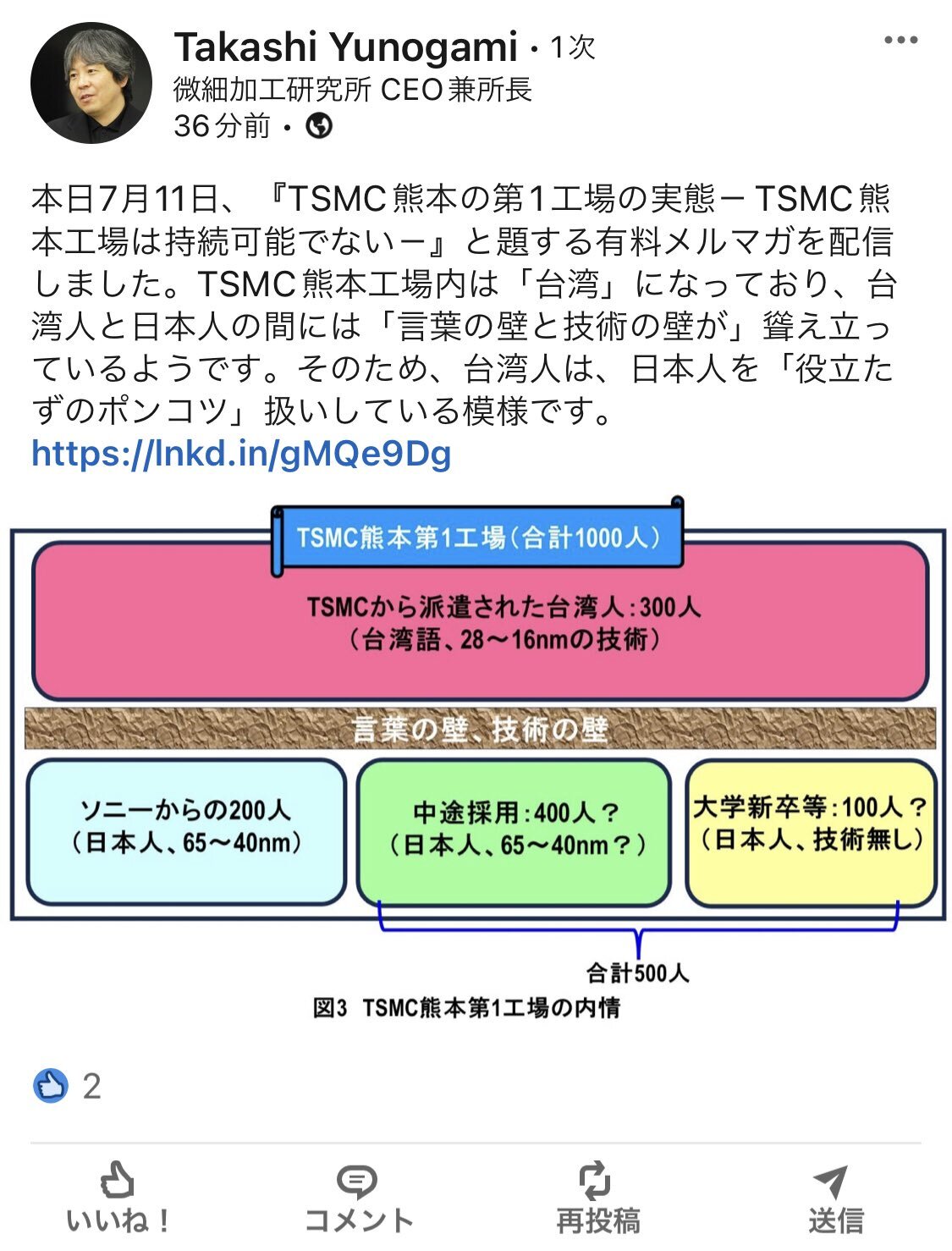 【画像】TSMC社員「日本の理系は役立たずのポンコツ」