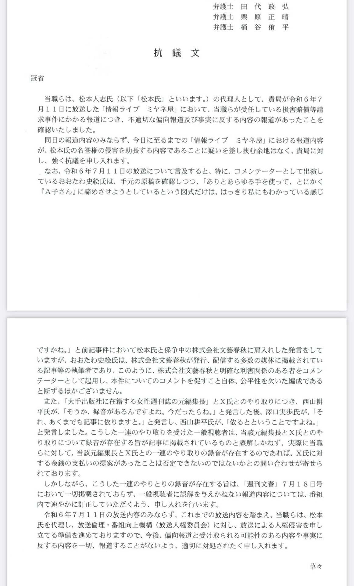 【画像】松本人志さん、ミヤネ屋へ怒りの抗議文投稿→酷評され炎上wwwwwwww