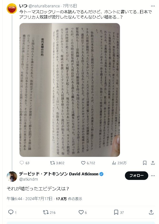 【悲報】日本政府観光局特別顧問「日本で黒人奴隷が流行ってなかったエビデンスを出せ」