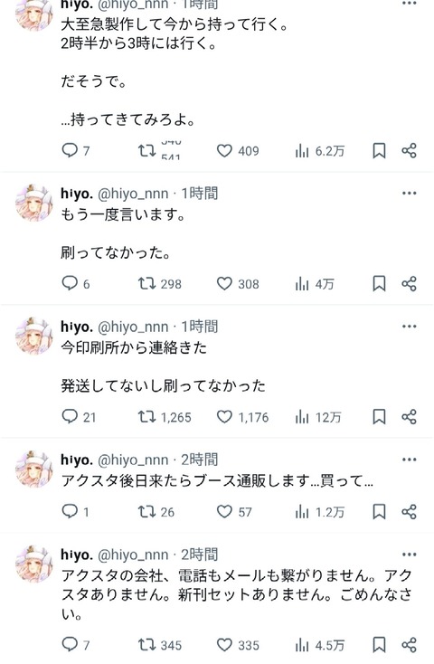 ホーム > ニュースetc > 【悲報】コミケ参加サークルさん、印刷所に忘れられるwwwww (※画像あり) 2024/08/11 1:以下、?ちゃんねるからVIPがお送りします:2024/08/11(日) 18:24:48.242 ID:GHGYFN7I0 かわいそう 続きを読む Source: ラビット速報 - ニュースetc