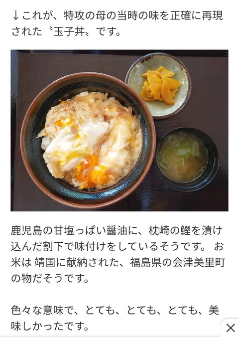 靖国神社名物『特攻の母トメ』が作る玉子丼 (※画像あり)