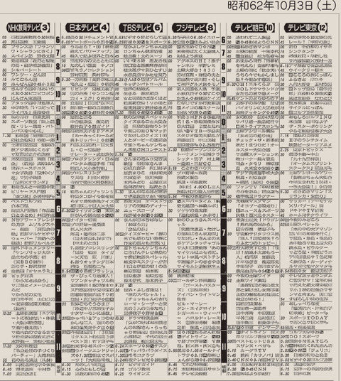 【画像】昭和62年のテレビ欄がこちらwwwwwwww