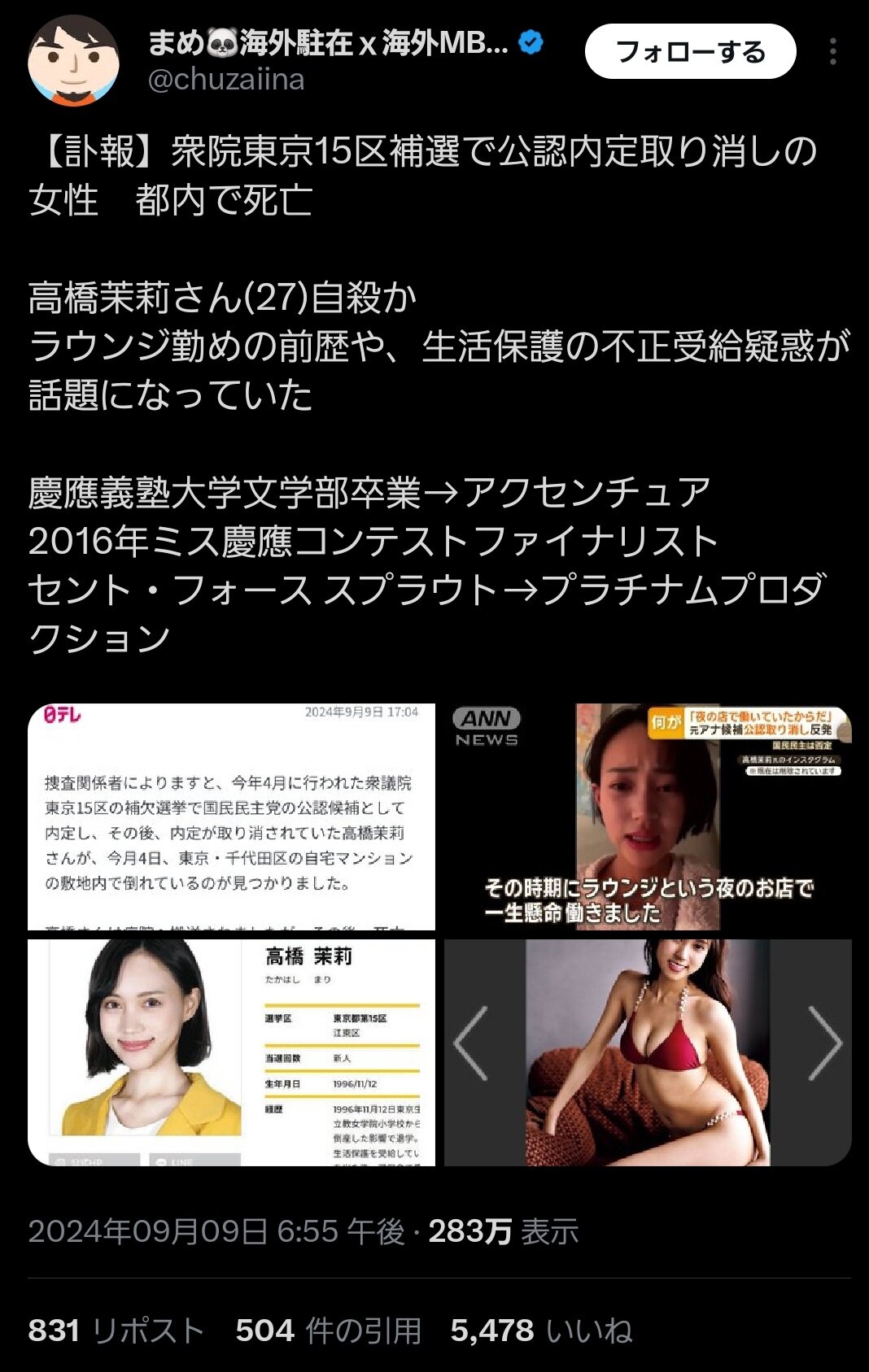 【訃報】生活保護中にラウンジで働いていたのがバレて大炎上した民主党候補のまんさん、自殺