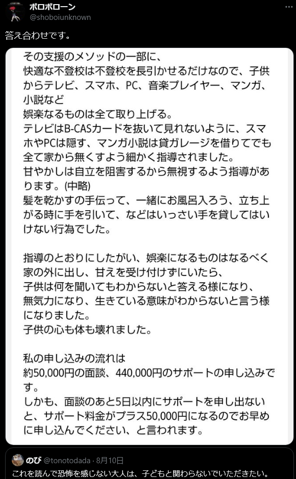【画像】不登校のガキ、50万円を費やして心を破壊されてしまうwwwwwwwww