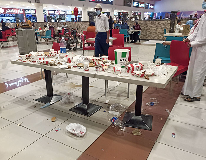 大家族がフードコートをこんな風にして去っていった