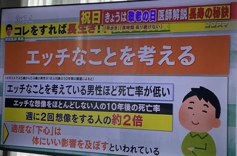 ホーム > ニュースetc > 【画像】Hなことを考える男性は死亡率が1/2と判明wwwwwwwww 2024/09/20 1:以下、?ちゃんねるからVIPがお送りします:2024/09/19(木) 18:50:54.335 ID:ewzTItaJ0.net お前らよかったな 3:以下、?ちゃんねるからVIPがお送りします:2024/09/19(木) 18:51:52.144 ID:wrvygjXP0.net お茶の間で言うな 続きを読む Source: ラビット速報 - ニュースetc