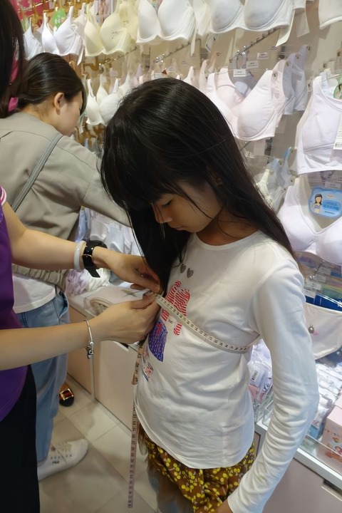 【画像】JSさん、まだブラが必要ないのに胸のサイズを測ってしまうwwwwwwww