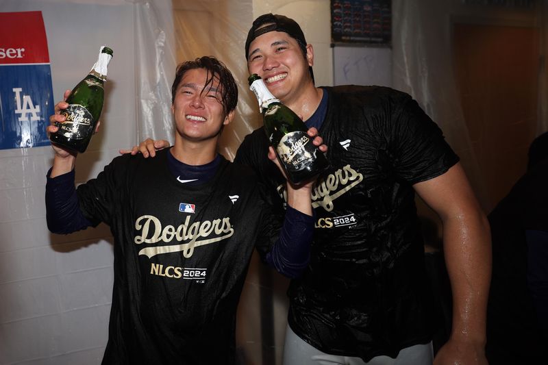 クラブハウスでポストシーズン第1ステージ勝利を祝う山本由伸&大谷翔平