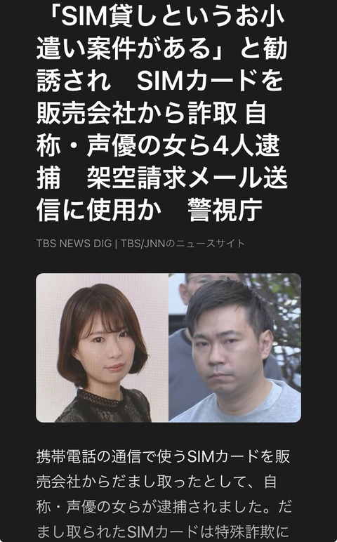 ホーム > ニュースetc > 【悲報】自称声優さん、闇バイトで逮捕され仕事を失う → ご尊顔がこちらwwww (※画像あり) 2024/11/04 1:以下、?ちゃんねるからVIPがお送りします:2024/11/03(日) 23:49:52.400 ID:ICpHWm/C0 写真集も出してた模様 2:以下、?ちゃんねるからVIPがお送りします:2024/11/03(日) 23:50:44.163 ID:iJ+PH3Nt0 これはAV落ちですわ 続きを読む Source: ラビット速報 - ニュースetc