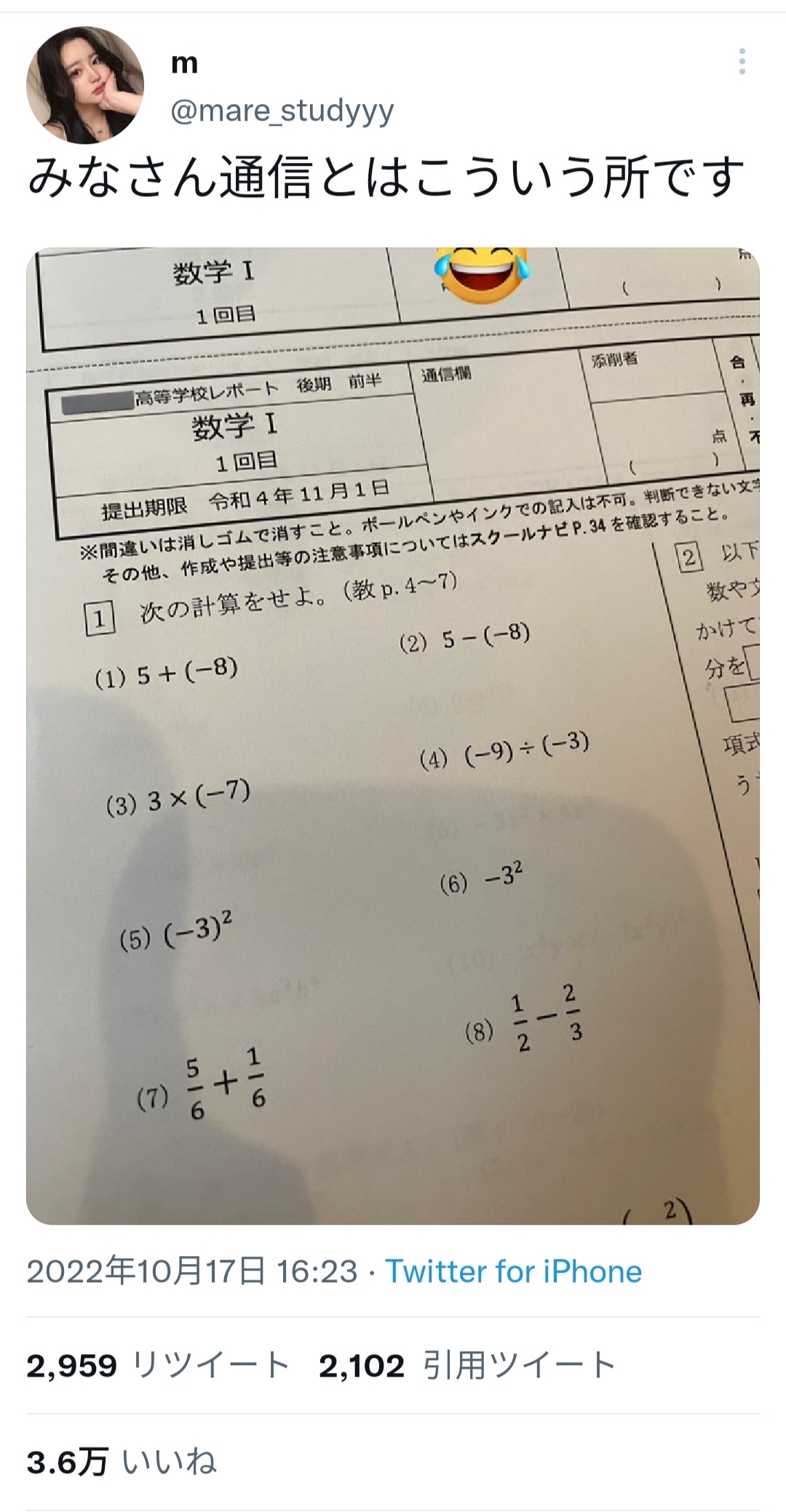 【画像】女子高生「ウチの通信高校の数学のレベルヤバすぎ~www」